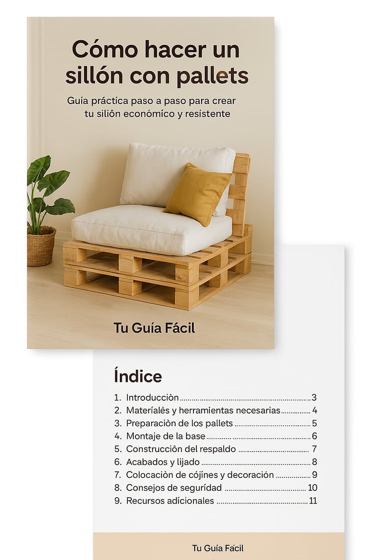 Creé esta guía con la misión de compartir mi conocimiento y mi entusiasmo contigo. Quiero inspirarte a tomar el taladro, el martillo y la lija, y a que experimentes la alegría de tener un sillón hecho por ti mismo.
